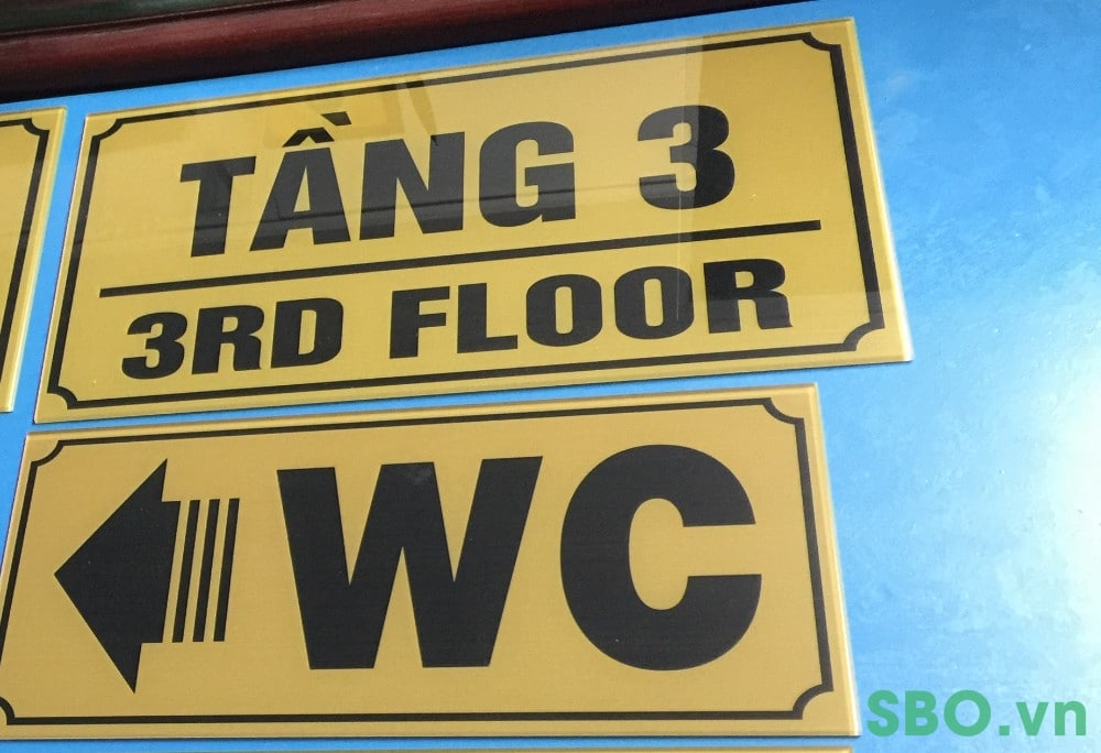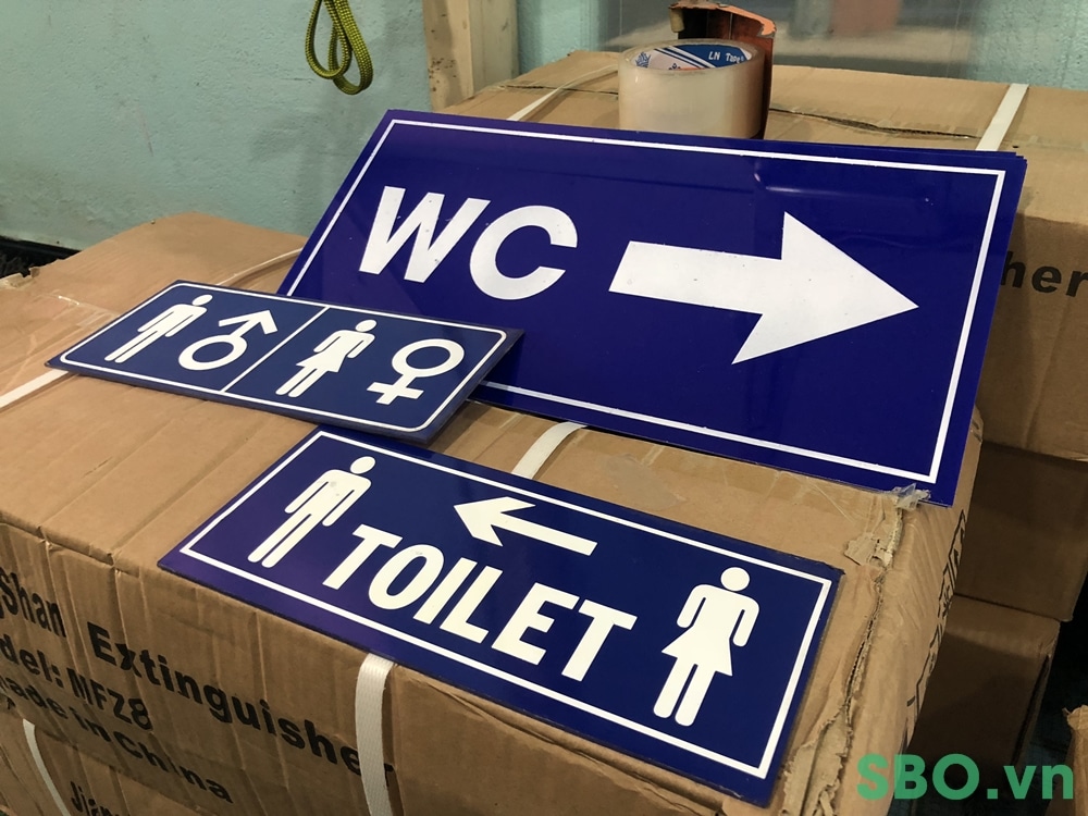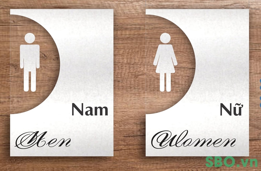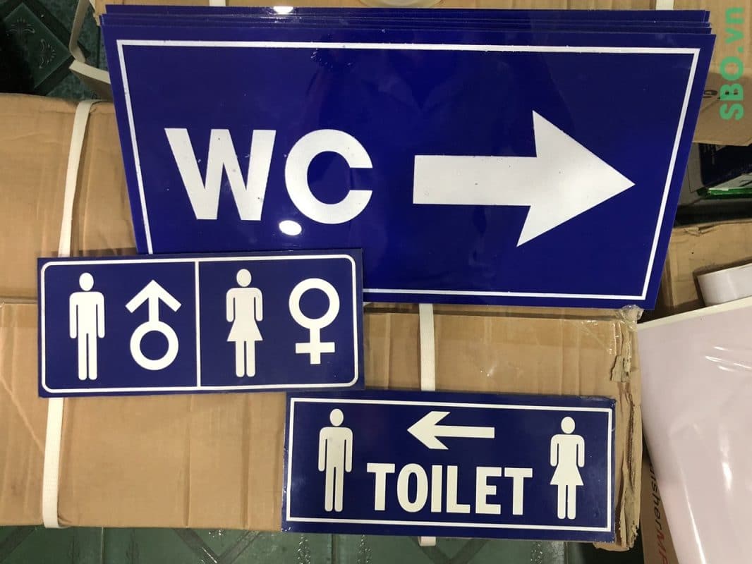 Tùy theo sở thích và thiết kế thì nội dung trên bảng có thể đặt tiếng anh hay tiếng việt vì với một số tên gọi như nhà vệ sinh, toilet hay WC thì ai cũng có thể hiểu họ đang đi đâu!