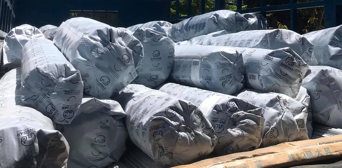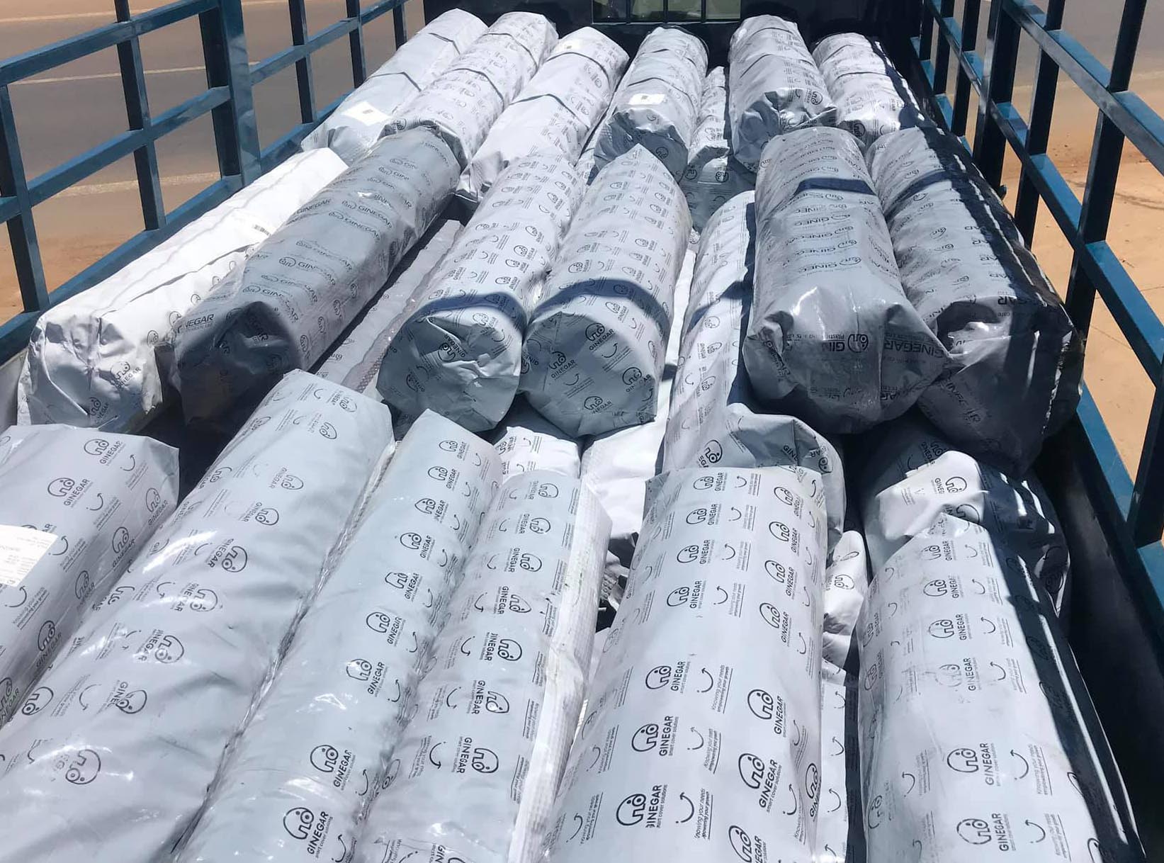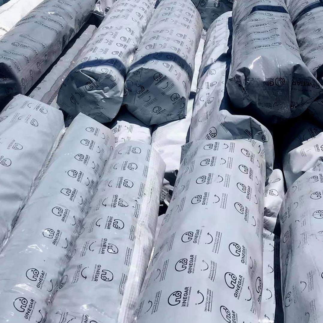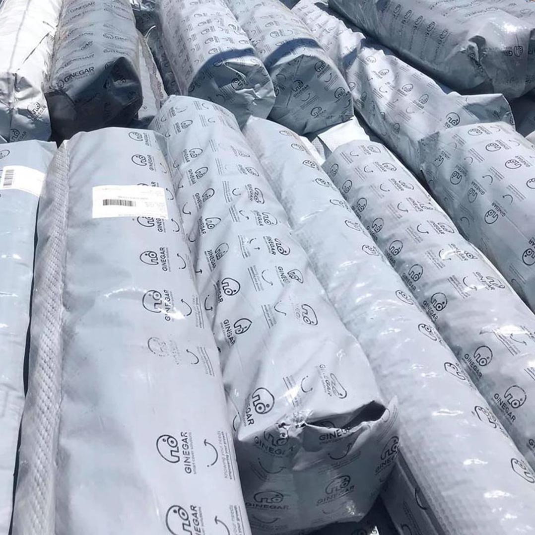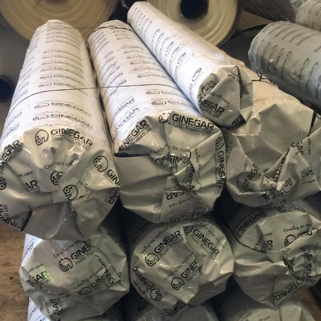- Cuộn màng nhà kính Ginegar chính hãng có bao bì đóng gói in rất nhiều chữ Ginegar trên bao bì cùng logo thương hiệu hình con voi